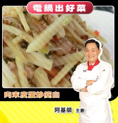 菜名:肉末皮蛋炒茭白材料:(主食材):白茭白筍400g(切4公分條狀)(副食材):瘦肉末50g、生皮蛋丁1粒、柚子肉1/4顆、韭黃丁10g、洋蔥丁15g、薑末5g、蒜末5g、紅甜椒丁5g(調味料):...