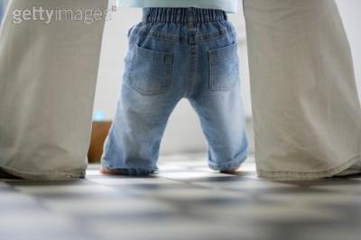 媽媽心軟了把兒子抱起來,兒子安心了笑了,