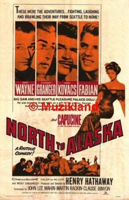 電影由Henry Hathaway導演﹐演員有John Wayne﹑Stewart Granger﹑Capucine 及歌星Fabian 等。Way up north…..North to Alaska…..