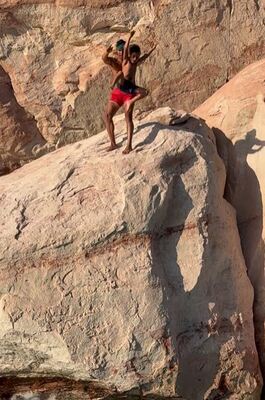 美國一位兒子想從懸崖跳水,但沒有勇氣,爸爸便將孩子抱起來扔下去。(圖/翻攝自IG@garrettgee)擁有百萬粉絲的網紅迦勒特(Garrett Gee)和他的家人,以《願望清單家庭》(The Bucket List Family)系列影片聞名,一家人踏上冒險之旅,24小時都在外、能玩多少景點是多少。7月時一家人曾分享旅遊行程,迦勒特與7歲兒子在湖風景區的一塊大石頭上,他把兒子扔下水引發眾多網友抨擊,如今他本人站出來回應,「推孩子一把」的行動因人而異,自家孩子能接受,但這樣偏「極端」的方式並不適合所有人。