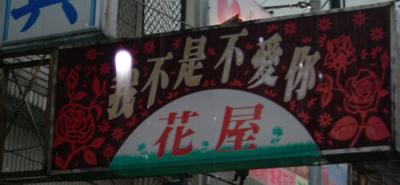 嘉義市,吳鳳北路,城隍廟前的花店招牌。 看到這句話,直覺讓人想要在底下接上兩個字:「只是......」 怎麼看都像個藉口! 那,到底買不買花呢? 看來,好像也不太重要囉!哈!