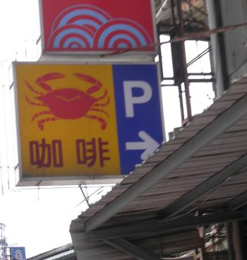 螃蟹除了喝醉酒之外,還有什麼時候會直著走? 答案是:喝了咖啡之後,因為太興奮,所以直著走!哈! 毫無邏輯的店招,有點好笑,順手拍了下來。