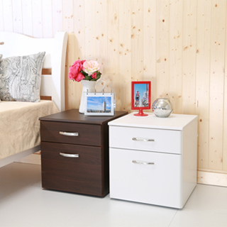貼心好用的床頭收納櫃,面板採塑合板貼PVC,防潑水又耐刮,無銳角邊緣,不擔心刮手或碰撞,讓床邊空間更有安全性。二抽設計,一大一小,可放置睡前閱讀的書本,或一些貼身使用小物品。抽屜附上把手,推拉更順手。更貼心的是這款活動櫃附有煞車輪及腳墊兩種配?,若你需時常移動櫃子,可裝上輪子,讓櫃子可輕鬆移動,扳下止滑即可固定住輪子。若當置物櫃或床頭櫃不常移動,可換上調整腳墊,可微調高度。兩種配件讓您依需求更換,讓櫃子除了床頭櫃外,也可當置物櫃、檔案櫃使用,功能更多元。有胡桃及白色兩色可選。