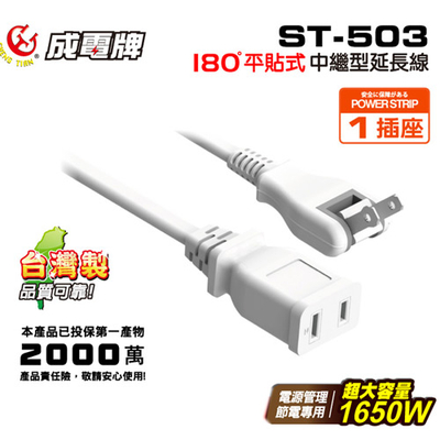 3C特賣!成電 2孔單座180度平貼式中繼型延長線 3尺(0.9M ) ST-503 推薦