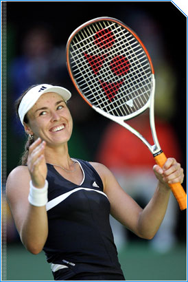 Hingis這次復出,出乎意外的成功,又看她在球場上甜美的笑口常開。雖然有人說她以前帶股驕縱,有次居然跑到對面,跟裁判爭球是否出界,有點太過份,不過這些都過去了,剛才看她輕鬆在男女混合雙打獲勝,展現球技令人佩服。前幾年大小威廉斯橫掃網壇,她靜待這股旋風過去,打出難得的好球。