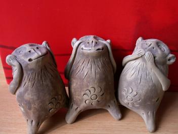 那次把”不說”放在微波爐裡,結果炸個粉碎之後,對剩下的一套三只猴子就不敢再輕舉妄動。