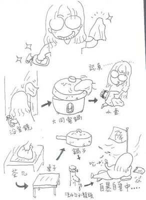 午小鬼終於被我壓到睡著了 ,心想終於可以休息一下偷上網 ,沒想到在外走廊掃地的兩個女生緊張的來說托把掉到樹上了...