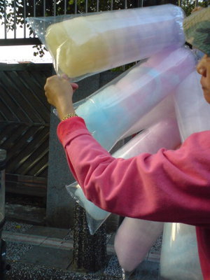也曾在校門口看見一位中年男子扛著掛滿棉花糖的棍子來兜售 ,