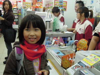 2012/10/31(三)雨天就在送完祐去上學遇到了開著車正要送兩個兒子去學校的Leslie"你等一下帶小益去...