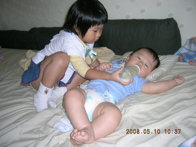 2007/02/04 (祐2歲5個月)臭小子醋勁真的很大前陣子一直吵著要睡嬰兒床(我們都叫它小床)因為一直擺在...