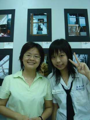 這是我們班的國文老師 她是士商畢業的唷~~以前是國貿科的 雖然我之前是商經.但也算是我學姊吧~ㄎㄎ 她還堅持要跟我的作品合照..真可愛..哈哈~[作品在上方啦..ㄎㄎ咚]