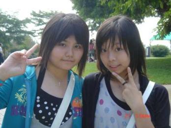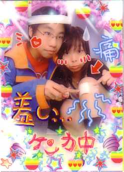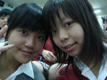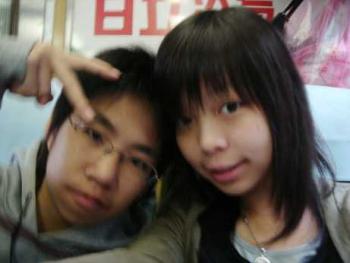 左邊是美肥.右邊是台依[我啦= =] 看到我膝蓋上的紗布沒有?! 這是上次跌很用力的傷口..哈哈 笨 還特地跑去拍貼做紀念?! 真是神經病.呵 有的時候會想...