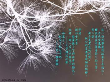 照片原文: 這一刻我帶著我的影子去逃亡, 在天空邊緣釋放角落中豢養許久的天堂。 有人說, 影子是黑色的沉默, 純白則是渴望飛翔的翅膀。 那麼, 假如全世界都置換了它們的顏色, 也許...