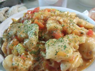4.淋在已經做好的麵疙瘩上面,灑一些洋香菜粉