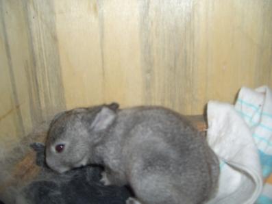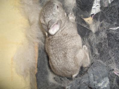兔兔寶貝生產了~~ 今天~就再10點左右餵食時 發現兔兔窩裡兩駝黑黑的東西在動???!!! 不會吧!!可是書上小北鼻是膚色呀!?? 可是這兩三天她都待在外頭沒有進房間... ...