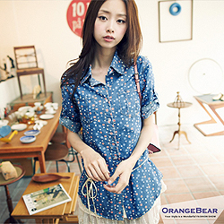 『0612新品 馬卡龍女孩~繽紛圓點點可調袖長版丹寧襯衫』