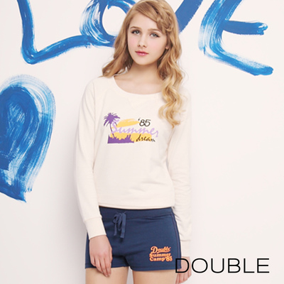 【DOUBLE】MIT夏日風情連袖薄長T(米白S-L)