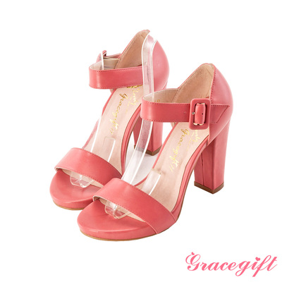 Grace gift豔夏玩美-繽紛俐落感韓系高跟涼鞋 桃紅