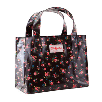 Cath Kidston-品牌經典油布挺版萬用袋/手提包-邱園碎花黑