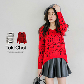 【東京著衣】十字幾何圖紋配色針織毛衣(韓系)