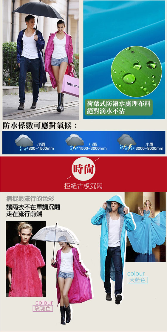 ●時尚GET!多種顏色任君挑選,穿出屬於你的雨衣時尚