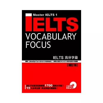 本書以15項主題分類,並依單字在 IELTS 測驗的出現頻率高低分為高頻、精選以及挑戰單字三大類,以單字搭配例句的方式,提供考生最有效率的學習。此外,本書更深入剖析寫作測驗的圖表寫作及申論寫作,提供考生寫作必備用字。增訂版因應考題趨勢,特新增200個高分字彙,並增加部分單字的同義字與衍生字,幫助考生真正深入認識字彙進而實際運用,不再浪費時間爛記死背。