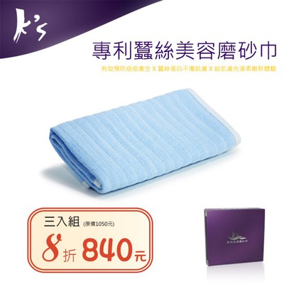【Ks凱恩絲】專利蠶絲美容磨砂小方巾3入組(蠶絲去角質美容巾)