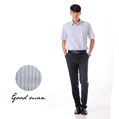 【Good Men】灰底藍條高雅紳士短袖襯衫(A-220-2)