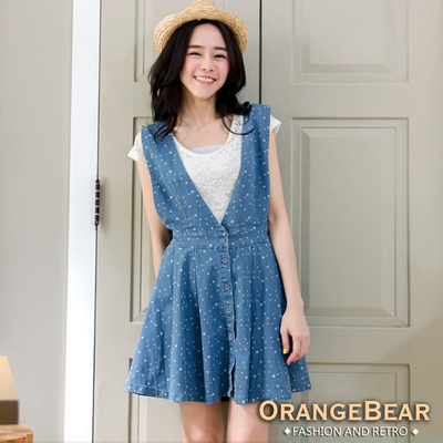 OB嚴選-V字開口排釦星星仿牛仔洋裝