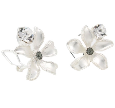Top10名人最愛精品>銀色綻放花朵透亮晶鑽耳環