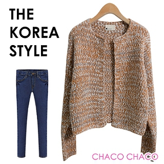 前幾天在逛街的時候看到【預購CHACO韓國】韓製混色針織短版無釦罩衫外套G5071(4色 free)