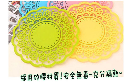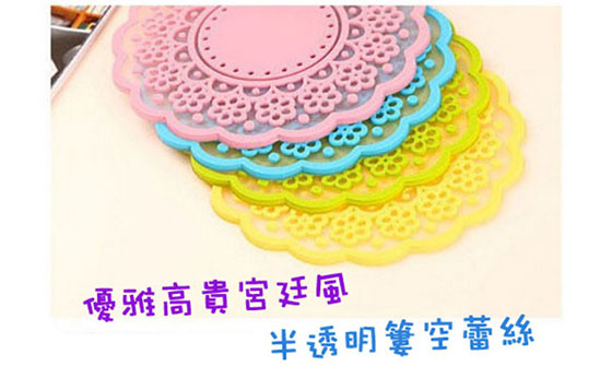 半透明鏤空蕾絲,為居家營造優雅高貴宮廷風,採用安全無毒的矽膠材質,能充份隔熱。