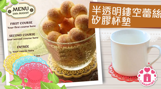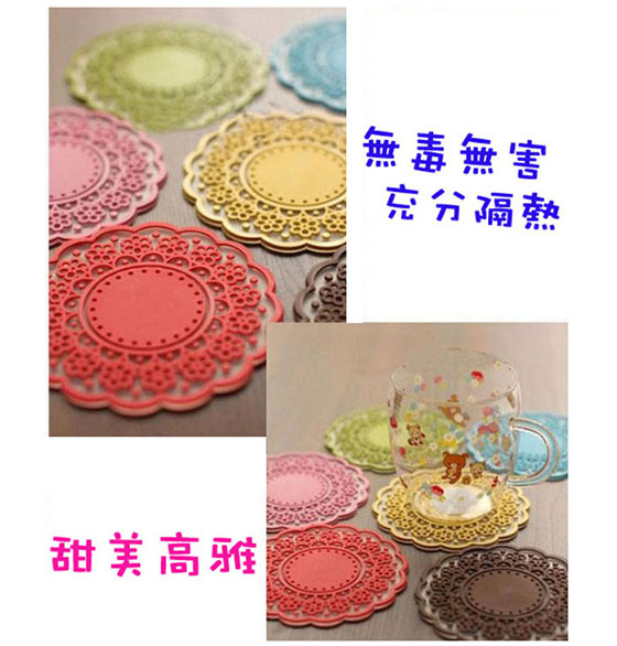 .....宅配只要一個蕾絲杯墊,浪漫氛圍不必遠求!採用安全無毒矽膠材質,充份隔熱,愜意享受屬於你的午茶小確幸!