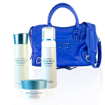 TOPlay 聽不累耳機>【Elizabeth Arden】極光天使白保養時尚組(平衡露+慕斯+美白C膠+藍色機車包)