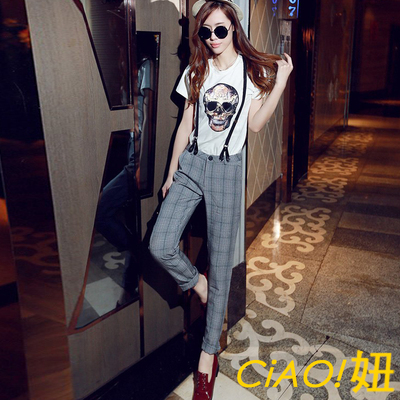 ☆斜插式口袋實用慢慢跑快快瘦又方便☆可拆卸吊帶可隨性搭配英倫紳士風格紋吊帶老爺褲 (灰色)-CiAO妞 ...