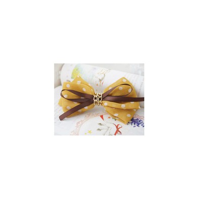 【Reaka芮卡韓飾】韓國雪紡波點蝴蝶結髮夾 髮飾(黃)