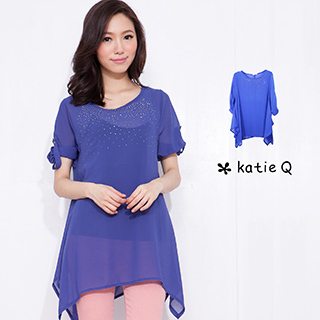 【katieQ-2014雪紡上衣】浪漫美學層次雪紡上衣M-3L(藍色+內搭衣)