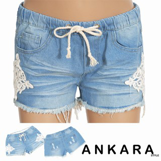 【AnKaRa】磨破淡藍蕾絲短褲(S-XL)