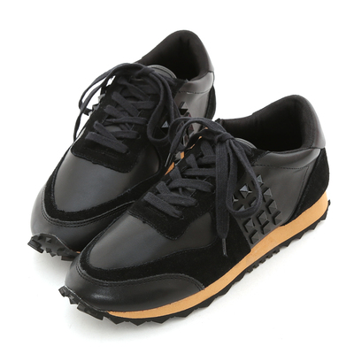 D+AF 街頭龐克‧拼接感立體鉚釘休閒運動鞋*時尚黑