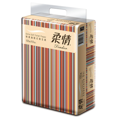 柔情特柔抽取式100抽-8包-6袋-條紋版-箱