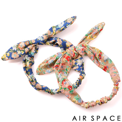 AIR SPACE 法式花朵蝴蝶結雪紡彈性髮帶
