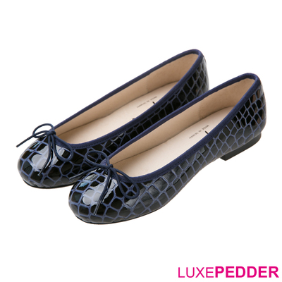 Luxepedder芭蕾舞鞋★MIT全真皮鱷魚紋皮革 - 普魯士藍