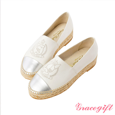 Grace gift X Crystal Ball聯名皇家HIPPIE麻編厚底休閒鞋 白