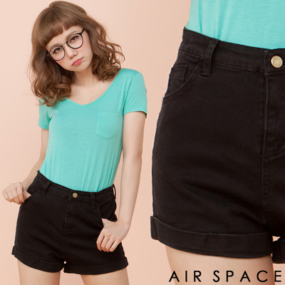 AIR SPACE 反摺褲管素面彈性高腰短褲(個性黑)CP值超高的,快來揪同事團購囉^^
