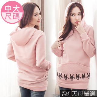 ★★【天母嚴選】抗溫差-中大尺碼-連帽兔子圖案內刷毛長T(共四色)★★限時限量、部落客強力推薦,CP值超高!
