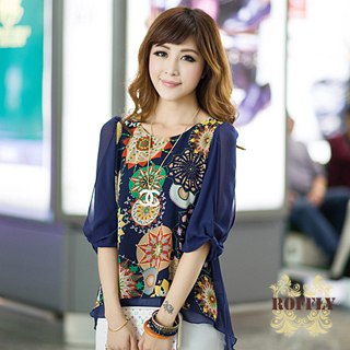【SHELOVES喜樂絲-ROFFLY蘿芙莉系列】大尺碼星星煙火印花雪紡上衣(9YB14A06)新年一定要穿新衣喔!而且換季拍賣怎麼能錯過.....