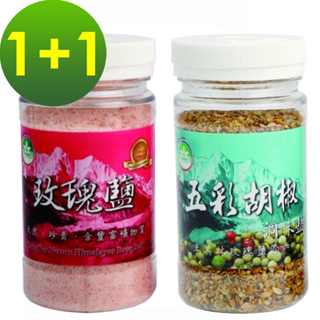 團購囉~~【隆一嚴選】五彩胡椒調味鹽(罐裝)+喜馬拉雅山-玫瑰鹽(細鹽)罐裝(2罐-組)