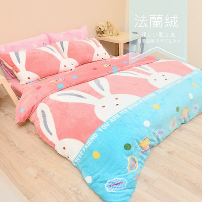 【R.Q.POLO】快樂兔-法蘭絨 雙人標準薄被套床包四件組(5X6.2尺)