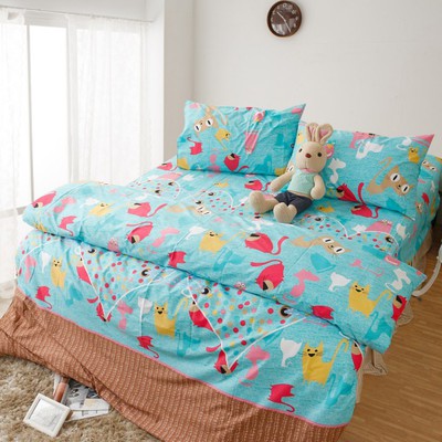 【R.Q.POLO】貓咪派對 絲棉柔-雙人標準被套床包四件組(5尺)