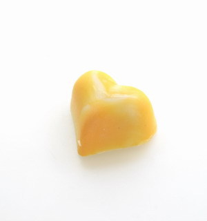 可可府專利巧克力,雙層白巧克力殼裡為雙層內餡,上層為新鮮的百香芒果果醬,下層